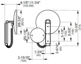 - 5x Magnification Power of the 8-3/8" silver-backed mirror lense allows a crisp, bright image. Perfect positioning can be achieved simply with the mere motion of the hand by adjusting the articulating arm and pivot. Mirror diameter: 8-3/8". Mounting plate: 7-1/8" x 1-3/4". LED Control: 5-/18" diameter.