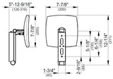 - Perfect positioning can be achieved simply with the mere motion of the hand by adjusting the articulating arm and pivot. Mirror diameter: 8-3/8". Mounting plate: 7-1/8" x 1-3/4" with rocker switch on top. Retracted, the distance from the wall to the face of the mirror is 4-7/16" and extended, 12".