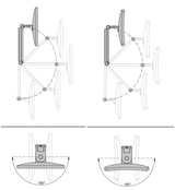 Tilt and Swivel: Every wall mounted mirror we carry both tilts and swivels. Swivel is usually 360° or close to it. Tilt is usually 15° up or down - sometimes more. A double-arm wall-mounted mirror has more capability than a single-arm mirror because in addition to rotating at the mirror pivot, you can also rotate through 360° or almost, at the elbow.