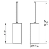 - Dimensions: 3-1/2" Wide x 15-1/16" High overall. The brush receptacle is 7-5/16" tall. Projection from the wall is 3-13/16".