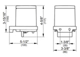 - Dimensions: 3-3/8" Wide x 4-5/8" High overall x 5-1/2" maximum projection from the wall. Corrosion free mounting material is included.