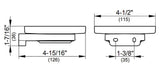 - Dimensions: 4-1/2" Wide x 1-7/16"" High overall x 4-15/16" maximum projection from the wall. Corrosion free mounting material is included.