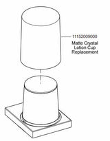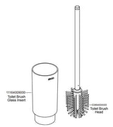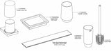 - Crystal Tumbler, Crystal Soap Dish Insert, Matte Crystal Lotion Cup, Toilet Brush Glass Insert, and Toilet Brush Head.