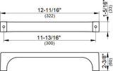- Dimensions: 12-11/16" Length overall x 1-5/16" High x 2-3/8" Deep. Mounts on 11-13/16" Centers.