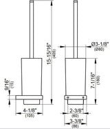 A toilet Brush Set by Keuco is a touch of luxury and a necessity in the bathroom - wall mounted to keep it off the floor, with replaceable brush heads - spare brush head included - and replaceable matte Crystal insert. The sleek lines and superb quality of a Keuco product will pamper you and captivate you with its flawless finish, carefully crafted straight edges, and rounded inner surfaces. The Keuco Toilet Brush set is available in 3 finishes - Polished Chrome, Brushed Bronze, Brushed Black Chrome, and Brushed Nickel. Dimensions: 11-13/16" Wide x 3-3/4" Deep x 2-5/8" High.