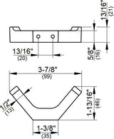 - Double Towel Hook: 5/8" High at the back 13/16" High at the front x 1/2" Thick each branch x 3-7/8" Wide overall x 1-13/16" Deep overall.
