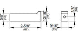 - Robe Hook: 5/8" High at the back 13/16" High at the front x 9/16" Thick x 2-5/8" Deep.