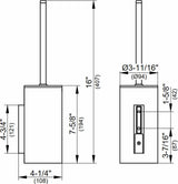 The Keuco Edition Actis Toilet Brush Set is complete with an opaque synthetic insert, brush with handle and lid, and a spare brush head is included. This is an heavy aluminum wall-mounted set - 16" high overall, with a 4-1/4" projection from the wall. A Keuco toilet brush set pampers your senses and captivates you with its flawless finish, and careful German craftsmanship.