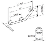 - 21-1/4" Overall Length x 9-3/16" High Overall. Projection: 2-13/16". Mounting Flanges have a 2-1/16" Diameter. Rail Diameter 1-5/16".