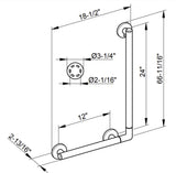 - 24" Bar, Overall dimensions: 18-1/2" Wide x 27-1/4" High Overall. Mounting centers are 12" Horizontally and 24" Vertically. Projection: 2-13/16".