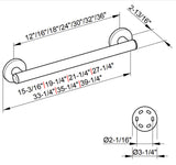 - The Grab Bar is 1-5/16"" Thick and projects 2-13/16" from the wall. The overall length of the assembly is approx 3-1/4" longer than the bar itself.