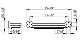 - Dimensions: 15-3/4" Wide overall x 2-3/8" High x 4-5/16" Depth. Note that the bar itself is only about 13" wide. The Squeegee adheres magnetically beneath the shelf and adds about 1/2" to the overall height.
