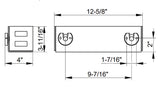 - Overall dimensions: 12-5/8" Wide x 3-11/19" High x 3-3/4" Projection. Mounting is hidden.