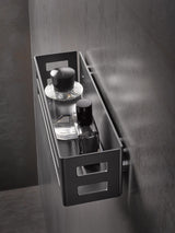 Keuco's "protected" shower basket is made from rustproof aluminum, and available in Matte Black or Matte White finishes. Protected from what? Because as a shower shelf, it's surrounded by a "fence" it protects your toiletries from slipping to the shower floor. The shelf has integrated drain slots, and is removable for cleaning or other purposes. The sleek lines and superb quality of a Keuco product will pamper you and captivate you with its flawless finish, careful craftsmanship, and hidden mounting arrangements.