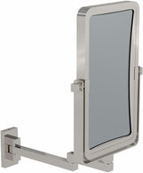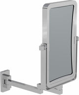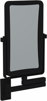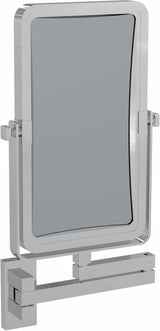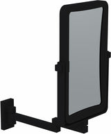 Tilt and Swivel: Every wall mounted mirror we carry both tilts and swivels. Swivel is usually 360° or close to it. Tilt is usually 15° up or down - sometimes more. A double-arm wall-mounted mirror has more capability than a single-arm mirror because in addition to rotating at the mirror pivot, you can also rotate through 360° or almost, at the elbow.