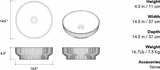 - Exterior Dimensions: 14.5" Diameter x 4.3" Deep.