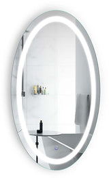 - Krugg Icon Oval LED Bathroom Mirror - equipped with E-Z On/Off Touch Sensor Dimmer and built-in Defogger using safe, gentle heating coils.