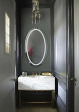 This oval LED lighted bathroom mirror is a true ICON of sleek, aesthetic style and sophistication. The highest quality silver-backed, copper-free glass provides you with a clear, crisp, and flawless reflection. Truly functional art, this LED front-lit mirror provides task-specific dimmable daylight illumination for your cosmetic, hygiene and dressing needs. Experience true luxury with the built-in defogger mechanism that maintains a fog-free mirror every time.