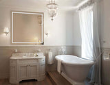 - Krugg Icon LED Bathroom Mirror - equipped with E-Z On/Off Touch Sensor Dimmer and built-in Defogger using safe, gentle heating coils.