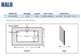 - Amsco's HALO backlit mirror by Aamsco is a multi-layer arrangment. Working out from the center: Backlit LED main mirror section, surrounded by glass ringed in Black & Silver, and finally framed in Aluminum.