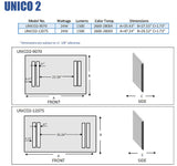 - Unico 2 has two overall sizes: 35.34" Wide x 27.55" High, or 27.24" Wide x 29.52" High, both with a tolerence overall of 0.125". Surface mounted and hardwired, the mirror needs a separate wall switch.