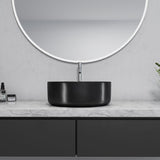 - Altair Sabine 14" Round Ceramic Vessel (above-mount) Bathroom Sink in Black or White Ceramic - for a high-end appearance to your vanity setup..