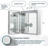 Aquadom EDGE Royale 2-Door LED Medicine Cabinet with 3x Makeup Mirror - 30" or 36" Wide, 32" High