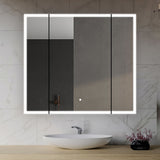 Aquadom's Edge Royale 3-Door Medicine Cabinet installs either recessed or surface-mounted, and the required hardware for both options is included. A frosted perimeter on the door mirror delivers bright 6,500K daylight LED illumination with an 80+ CRI, while premium BLUM soft-close hinges open to a full 155° for easy access.