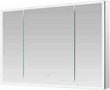 48" Wide x 32" High, the left and center doors open with hinges on the left, while the right-hand door has its hinges on the right. Finger recesses for opening/closing on the doors edges keep the mirrors fingerprint-free.