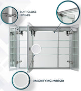 Aquadom EDGE Royale 3-Door LED Medicine Cabinet with 3x Makeup Mirror - 48" or 60" Wide, 32" High