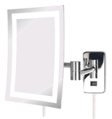 - Jerdon Plug-in wall-mounted minimalist make up mirror with elegant edge-to-edge halo-lighting inset within the perimeter.