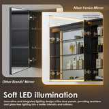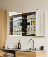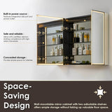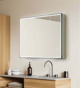 Sseamless blending of style and utility is evident with Altair's double-door 36" wide Fenice LED Medicine Cabinet. With a memory function, dimming and color-temperature adjustability, it's stylish choice for your bathroom. The soft LED lights, controlled by a touch sensor, give you the exact amount of illumination needed. The built-in memory recalls your settings automatically for the next use. Inside, there are is an electrical outlet equipped with USB ports to ensure your styling tools and cell phone are easy to deal with. On a matte black aluminum frame, the Fenice has squared corners and lighting inside the door as well as outside.
