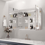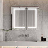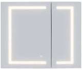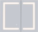 Introducing Altair's stunning asymmetric LED Mirror Medicine Cabinet. A wider door on the left, and a narrower door on the right. The wide door has the touch sensor that controls the LED color temperature, light intensity (dimmer) and on/off functions. It's both stylish and functional and actually fun to use during your daily routine. With one of these in your bathroom, the aesthetic of your room is enhanced and beyond that, practical features are included for your convenience. Two sizes: 31.5" x 27.5" High, and 35.8" actual x 30" High. The greater width of the 36" size is completely assigned to the right-hand door.