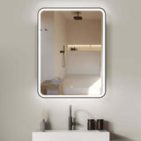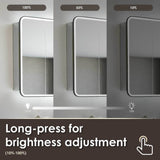 - Altair Ostaria LED lighted Mirrored Medicine Cabinet, with touch lighting cleverly present on both sides of the matte-back framed door. Lighting control on the face of the mirrored door.