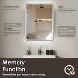 - Soft-close door. Mirroring and lighting on both sides of the door and the back wall. Three interior tempered glass shelves are .3" Thick.