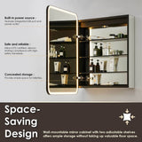Altair Ostaria Medicine Cabinet is one where form meets function. State-of-the-art technology lets you experience optimal visibility with adjustable LED lighting on both sides of the door. The lighting mood is easily tailored to your preferences with a simple touch - both for intensity and color. An integrated dual-USB port and electrical outlet provide convenient power your daily styling and grooming tools, cell phone and more. There's a memory built in that saves you last lighting setup. Behind the mirrored doors, the cabinet contains three height-adjustable shelves to neatly organize all your essentials. As an essential addition to any modern bathroom, the durable Ostaria is a beautiful one.