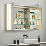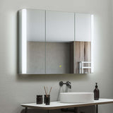 - Altair Serra 3-Door LED lighted Mirrored Medicine Cabinet, with touch lighting control on the face of the mirrored door.