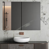 Two-Door Royale Medicine Cabinets by Aquadom are suitable for surface mounting or recessing. The cabinets are somewhat unusual insofar as the door arrangements go. The 30" and 36" wide cabinet models have offset doors, so the left door is wider than the right door, but both doors open from the center using soft-close hinges that open to 155 degrees. The 48" wide model has two equal size door - also center opening. Inside there are 8mm thick adjustable glass shelves - 3 in the 30" High cabinet and 4 in the 36" high cabinet. On the interior of the left-hand door there's an LED-lighted 3x makeup mirror. It flips out for use, and is vertically adjustable for easy viewing - plus, it's detachable. Also inside, you'll find a double electrical outlet and a magnetic strip to hold small metal tools such as scissors or tweezers. The doors are mirrored inside and outside as is the back wall, and the mirrors are quality polished-edge 5mm pure silver backed, for the best reflectivity. There are six sizes to fit your bathroom and provide d you with a good-looking addition to complete your bathroom decor.