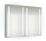 - Krugg "Kinetic" Mirrored double-door center open Medicine Cabinet with dimmable LED lighting and integrated sensor touch control with memory.