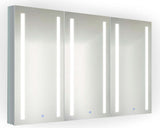 - Krugg "Kinetic" Mirrored triple-door Medicine Cabinet with dimmable LED lighting and integrated sensor touch control with memory.