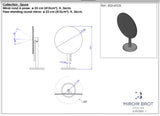 - 9" mirror diameter (23 cm) and overall height 14.2 inches (36cm). The weighted and padded base is diameter is 4.7".