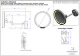 - 9.5" mirror diameter (24 cm), overall height approx 16.5 inches (42cm), maximum extension 13.8 inches (35cm). The mounting plate diameter is 4.3 - fits a standard 4" octagon box.