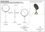 - 9.5" mirror diameter (24 cm), overall height 16.1 inches (41cm). The base diameter is 4.7" - weighted and padded to protect your furniture and provide stability.