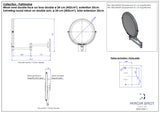 - 9.5" mirror diameter (24 cm), maximum extension 13.5 inches (35cm). The mounting plate diameter is 4.7" high x 2.75" wide.