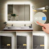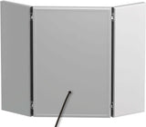 Usually reserved for works of art, the typical Tryptich arrangement shines in this top-drawer quality vanity mirror with lights. The two side panels or "wings" are connected with special 180-degree hinges so that the panels can be set at any angle, and that includes closing to cover the center section or "main" mirror. Lighting around the edge frames the mirror and bathes it in LED illumination, both front and rear facing - independently controlled. There's also a built in electric defogger to give you a clear surface for shaving or grooming after a steamy shower. Lighting is controlled by a continuously variable dimmer and by color adjustments to the LEDs. The LEDs can be switched from 3,000k warm white indoor lighting, to 4,000k office lighting, and 6,000 white daylight. A memory function retains your settings so that upon returning to your mirror your setup is exactly the same as the last time you used it. Additionally, there's a strong magnetic makeup mirror with 10x magnification, perfect for fine work on eyebrows, applying eye liner, or dealing with contact lenses. Four widths, all 36" High: 48", 54", 60", and 66". 1-Year manufacturer's warranty.