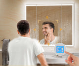 - LED illumination frames the mirror front and rear, and both the front and rear lighting are independently controlled