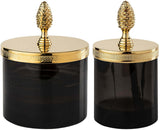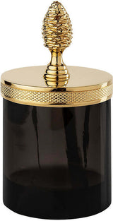 Cristal&Bronze Obsidienne "Chiseled" Pinecone Handle Q-Tip Jar