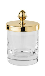 All Cristallin "lisse" (smooth) Q-tip holders Cristal&Bronze of France are fabricated in crystal-clear crystal and available in 27 different metal finishes. The term "lisse" refers to the smooth/polished finish of the metal trim sections. Cristal&Bronze of France, maker of the finest in bathroom and boudoir accessories hand-fabricates each piece in the Cristallin Series in Chateau-Landon, near Paris, France. Finishes are impeccable and make for outstanding bathroom or boudoir pieces. They're custom made for you in one of 27 metal finishes and shipped in about 7 weeks. Some sooner.
