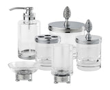 All Cristallin "cisele" (chiseled) Q-tip holders Cristal&Bronze of France are fabricated in crystal-clear crystal and available in 27 different metal finishes. The term "cisele" refers to the chiseled work in the metal trim sections including the difficult to create "pine cone" or "pineapple" lid. Cristal&Bronze of France, maker of the finest in bathroom and boudoir accessories hand-fabricates each piece in the Cristallin Series in Chateau-Landon, near Paris, France. Finishes are impeccable and make for outstanding bathroom or boudoir pieces. They're custom made for you in one of 27 metal finishes and shipped in about 7 weeks. Some sooner.