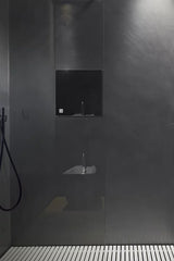 No electrical wiring for the ClearMirror Clarity Li Ion heated fogless Shower Mirror. The Clarity installs easily and can be periodically removed for cleaning. Using 3M Dual Lock™ technology, the Clarity mounts to any smooth surface and requires no remodeling or electrical connections. It is powered by a Lithium Ion battery pack that removes for recharging. On average, 10 cycles are run before recharging is necessary. The 1/8" glass mirror is 12" x 12" and has a 10" x 10" fog-free area. The Clarity is shipped fully assembled with the battery pack, and charger included.